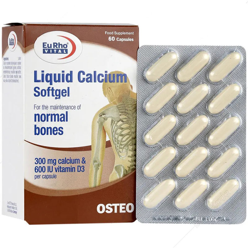 سافت ژل لیکوئید کلسیم یوروویتال با داشتن ۶۰۰ میلی گرم کلسیم و ۳۰ میکروگرم ویتامین دی در هر دو کپسول یک مکمل مناسب جهت تقویت استخوانها و جلوگیری از پوکی استخوان و افزایش تراکم استخوان است. ویتامین دی موجود در این مکمل به افزایش جذب کلسیم و فسفر کمک کرده و کارایی آن را دو برابر میکند. در خانمها پس از سنین یائسگی، میزان کلسیم و ویتامین دی کاهش پیدا میکند، به همین دلیل مصرف کپسول Liquid Calcium یورو ویتال به خانمهای بالای ۵۰ سال و پس از سن یائسگی توصیه میشود.